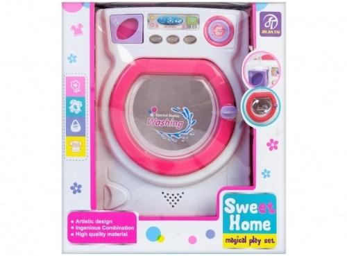 Produkt ten idealnie odzwierciedla prawdziwy sprzęt domowy, wydaje odgłos piorącego się prania a po naciśnięciu guziczka bęben pralki obraca się. Po skończonym praniu, można go otworzyć i wyjąć pranie. Ponadto pralka posiada wysuwaną szufladę na proszek. Produkt wykonany z plastiku. Przeznaczony dla dzieci od lat 3. Wymaga zasilania bateriami 3x LR6.