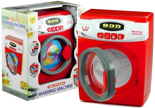 Grająca i świecąca pralka automatyczna dla dzieci Zabawki naśladujące prawdziwe sprzęty AGD są rewelacyjnym prezentem dla każdego malucha, który chce móc pomagać swym rodzicom, a także obsługiwać różne urządzenia. Zabawa pozwalająca w prosty sposób naśladować dorosłych oswoi dziecko z przyszłymi obowiązkami domowymi, a ponadto sprawi, że nie będą one dla dziecka karą, a przyjemnością. Własna pralka będzie również fenomenalnym dodatkiem do zabawy w dom, gdzie dziewczynka lub chłopiec będą mogli dbać o swoje zabawki, piorąc ich ubranka. Wygląd zabawkowej pralki niemal do złudzenia przypomina jej pełnowymiarowy odpowiednik. Czerwona pralka posiada biały panel z czterema przyciskami, a także podświetlany programator oznaczający etapy prania. Pierwszy przycisk oznacza pranie automatyczne, drugi — nabieranie wody, trzeci — wirowanie, natomiast ostatni — suszenie ubranek. Każdemu z nich towarzyszą dźwięki nawiązujące do każdego cyklu, a także podświetlony obrazek. W bocznej części panelu umieszczona jest wysuwana szufladka, w której dziecko może umieścić detergent do prania. Bęben pralki posiada szarą ramkę oraz trójkątny przycisk, ułatwiający otwieranie drzwiczek. Po umieszczeniu w bębnie ubranek lalek lub misiów, a następnie wybraniu programu prania, bęben kręci się — jego tempo zależne jest od etapu prania. Przeźroczyste drzwiczki pozwolą małej gosposi na obserwowanie wirujących ubranek — po zakończeniu zabawy pralka pika, sygnalizując, że już można wyciągnąć z niej suche, świeże stroje. Zabawkowa pralka zasilana jest 3 sztukami baterii AA 1,5 V, które nie są dołączone do zestawu. Sprzęt w całości wykonany jest z wysokogatunkowego, atestowanego materiału, jakim jest plastik. Konstrukcja zabawki pozbawiona jest ostrych zakończeń, dzięki czemu jest to bardzo bezpieczna propozycja zabawy. Dziecięca pralka posiada certyfikat CE, jest zgodna z normą EN 71. Zabawka zapakowana jest w estetyczny kartonik z otwartą witrynką, dzięki czemu rewelacyjnie nadaje się jako prezent dla dziecka. Wymiary pralki: - 16,5 cm x 22 cm x 10,5 cm. Wymiary opakowania zabawki: - 24 cm x 27 cm x 13,5 cm.