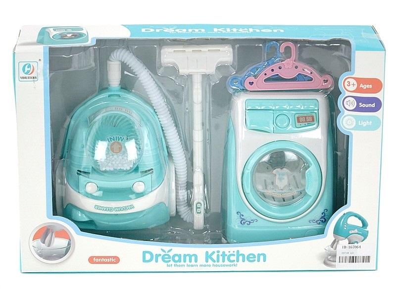 Zestaw AGD, pralka i odkurzacz, na baterie.