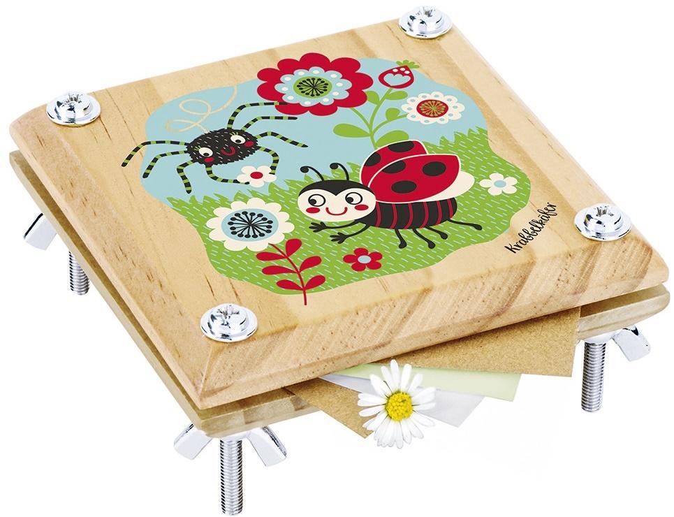 Mała, Drewniana, Prasa Do Suszenia Roślin z Kolekcji Mały Chrząszcz. Doskonałe narzędzie dla młodego naukowca i odkrywcy przyrody. Po powrocie z łąki lub lasu można zachować piękno zebranych skarbów, a później poznawać najdrobniejsze szczegóły kwiatów, liści i innych przedmiotów. Prasowanie kwiatów i liści z dziećmi to dobry sposób na zapoznanie ich z przyrodą. Dzięki prostej obsłudze jest idealna do tworzenia własnego małego zielnika. W zestawie: