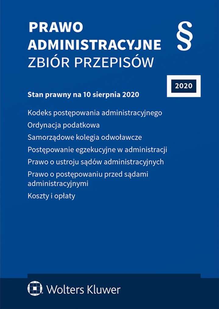 Stan prawny na 10 sierpnia 2020 r. Uwzględnia zmiany wchodzące w życie z dniem: KODEKS POSTĘPOWANIA ADMINISTRACYJNEGO: - 18 lutego 2020 r. – Obwieszczenie Marszałka Sejmu Rzeczypospolitej Polskiej z dnia 20 grudnia 2019 r. w sprawie ogłoszenia jednolitego tekstu ustawy - Kodeks postępowania administracyjnego (Dz.U. poz. 256) - 18 kwietnia 2020 r. – ustawa 16 kwietnia 2020 r. o szczególnych instrumentach wsparcia w związku z rozprzestrzenianiem się wirusa SARS-CoV-2 (Dz.U. poz. 695 ze zm.) - 11 sierpnia 2020 r. – ustawa z 16 lipca 2020 r. o udzielaniu pomocy publicznej w celu ratowania lub restrukturyzacji przedsiębiorców (Dz.U. poz. 1298) ORDYNACJA PODATKOWA: - 31 marca 2020 r. – ustawa z 31 marca 2020 r. o zmianie ustawy o szczególnych rozwiązaniach związanych z zapobieganiem, przeciwdziałaniem i zwalczaniem COVID-19, innych chorób zakaźnych oraz wywołanych nimi sytuacji kryzysowych oraz niektórych innych ustaw (Dz.U. poz. 568) - 18 kwietnia 2020 r. – ustawa z 16 kwietnia 2020 r. o szczególnych instrumentach wsparcia w związku z rozprzestrzenianiem się wirusa SARS-CoV-2 (Dz.U. poz. 695 ze zm.) - 24 czerwca 2020 r. – ustawa z 19 czerwca 2020 r. o dopłatach do oprocentowania kredytów bankowych udzielanych przedsiębiorcom dotkniętym skutkami COVID-19 oraz o uproszczonym postępowaniu o zatwierdzenie układu w związku z wystąpieniem COVID-19 (Dz.U. poz. 1086) - 1 lipca 2020 r. – ustawa z 16 października 2019 r. o rozstrzyganiu sporów dotyczących podwójnego opodatkowania oraz zawieraniu uprzednich porozumień cenowych (Dz.U. poz. 2200) - 1 lipca 2020 r. – ustawa z 23 stycznia 2020 r. o zmianie ustawy o jakości handlowej artykułów rolno-spożywczych oraz niektórych innych ustaw (Dz.U. poz. 285) - 1 lipca 2020 r. – ustawa z 5 czerwca 2020 r. o zmianie ustawy o podatku dochodowym od osób fizycznych, ustawy o podatku dochodowym od osób prawnych, ustawy o zryczałtowanym podatku dochodowym od niektórych przychodów osiąganych przez osoby fizyczne oraz niektórych innych ustaw (Dz.U. poz. 1065) - 1 lipca 2020 r. – ustawa z 28 maja 2020 r. o zmianie ustawy o podatku dochodowym od osób prawnych, ustawy o podatku od towarów i usług, ustawy o wymianie informacji podatkowych z innymi państwami oraz niektórych innych ustaw (Dz.U. poz. 1106) - 31 lipca 2020 r. – Obwieszczenie Marszałka Sejmu Rzeczypospolitej Polskiej z dnia 7 lipca 2020 r. w sprawie ogłoszenia jednolitego tekstu ustawy – Ordynacja podatkowa (Dz.U. poz. 1325) - 1 października 2020 r. – ustawa z 4 lipca 2019 r. o zmianie ustawy o podatku od towarów i usług oraz niektórych innych ustaw (Dz.U. poz. 1520) - 1 stycznia 2021 r. – ustawa z 11 września 2019 r. Przepisy wprowadzające ustawę – Prawo zamówień publicznych (Dz.U. poz. 2020) - 20 lutego 2021 r. – ustawa z 4 lipca 2019 r. o zmianie ustawy o postępowaniu egzekucyjnym w administracji oraz niektórych innych ustaw (Dz.U. poz. 1553 ze zm.) - 1 marca 2021 r. – ustawa z 19 lipca 2019 r. o zmianie ustawy – Kodeks spółek handlowych oraz niektórych innych ustaw (Dz.U. poz. 1655 ze zm.) POSTĘPOWANIE EGZEKUCYJNE W ADMINISTRACJI: - 30 lipca 2020 r. – ustawa z 30 sierpnia 2019 r. o zmianie ustawy – Kodeks spółek handlowych oraz niektórych innych ustaw (Dz.U. poz. 1798) - 30 lipca 2020 r., 30 października 2020 r., 20 lutego 2021 r., 30 kwietnia 2021 r., 30 października 2021 r. – ustawa z 11 września 2019 r. o zmianie ustawy o postępowaniu egzekucyjnym w administracji oraz niektórych innych ustaw (Dz.U. poz. 2070) - 20 lutego 2021 r., 1 stycznia 2022 r. – ustawa z 4 lipca 2019 r. o zmianie ustawy o postępowaniu egzekucyjnym w administracji oraz niektórych innych ustaw (Dz.U. poz. 1553 ze zm.).
