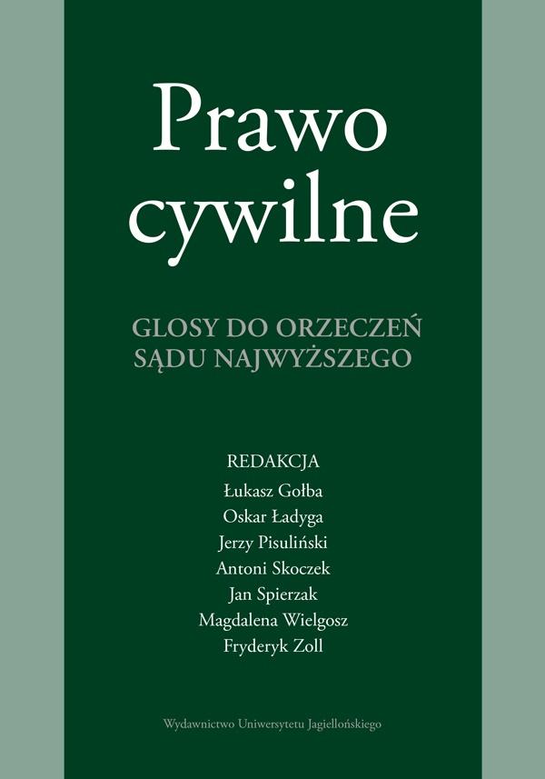 Przedkładany Czytelnikom zbiór glos do ośmiu orzeczeń Sądu Najwyższego stanowi wynik pracy w ramach seminarium magisterskiego prowadzonego przez Jerzego Pisulińskiego oraz Fryderyka Zolla. Glosy dotyczą zagadnień kontrowersyjnych. Nie tylko prezentują stanowiska dotyczące prawa cywilnego, które wymagają pogłębionej dyskusji, ale też ujawniają określony sposób argumentacji Sądu Najwyższego, warty krytycznego spojrzenia i refleksji. Glosy zostały starannie wyselekcjonowane i stanowią wynik pogłębionej dyskusji nad ich kolejnymi wersjami.