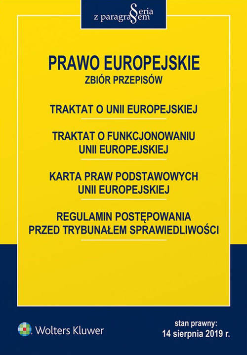 Publikacja zawiera przepisy Traktatu o Unii Europejskiej i Traktatu o funkcjonowaniu Unii Europejskiej wraz ze wszystkimi protokołami, regulaminami, załącznikami i deklaracjami oraz tabelami ekwiwalencyjnymi, a także tekst Karty praw podstawowych Unii Europejskiej. W 5. wydaniu zbioru uwzględniono w szczególności ostatnie przepisy zmieniające traktaty: - rozporządzenie Parlamentu Europejskiego i Rady (UE, Euratom) 2019/629 z 17 kwietnia 2019 r. zmieniające Protokół nr 3 w sprawie Statutu Trybunału Sprawiedliwości Unii Europejskiej, - decyzję Rady (UE) 2019/654 z 15 kwietnia 2019 r. zmieniającą Protokół nr 5 w sprawie Statutu Europejskiego Banku Inwestycyjnego, - decyzję Rady (UE) 2019/1255 z 18 lipca 2019 r. zmieniającą Protokół nr 5 w sprawie Statutu Europejskiego Banku Inwestycyjnego. W książce zamieszczono skorowidze rzeczowe pomocne w odnalezieniu poszczególnych zagadnień, a artykuły wielu aktów prawnych zostały opatrzone tytułami objaśniającymi ich sens.