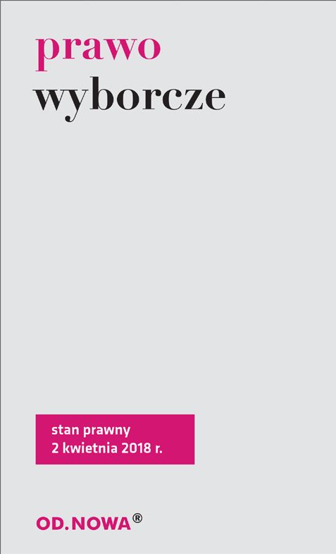 Nowa publikacja Wydawnictwa Od.Nowa stanowi kompletny zbiór przepisów na temat zasad i procedur dotyczących wyborów do organów państwowych. Broszura zawiera kodeks wyborczy, ustawy o referendum ogólnokrajowym oraz lokalnym, ustawę o partiach politycznych, a także tekst Konstytucji Rzeczypospolitej Polskiej. Korzystanie z książki ułatwia przejrzysty układ oraz opatrzenie ustawy głównej headlinami i skorowidzem. Ostatnie zmiany oznaczone są przypisami, natomiast przepisy wchodzące w życie w przyszłości zamieszczono w ramkach. Publikacja szczególna warta nabycia z uwagi na liczne zmiany wprowadzone w 2018 r. do kodeksu wyborczego oraz nadchodzące wybory do samorządu terytorialnego. Stan prawny: kwiecień 2018 r.