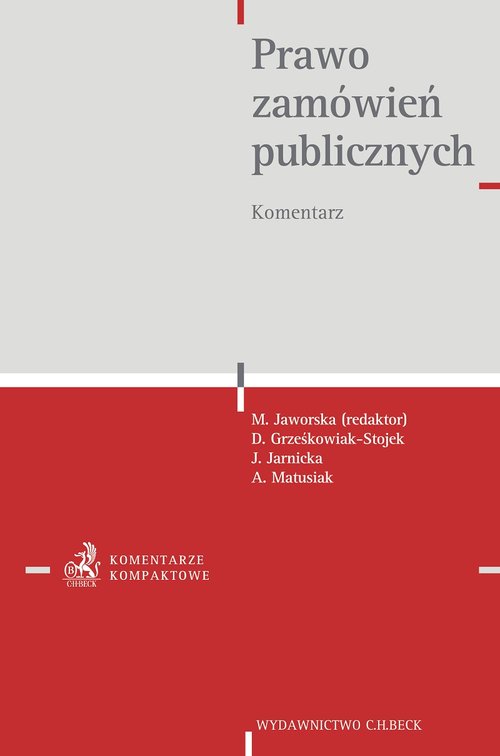 Prawo zamówień publicznych. Komentarz to pozycja, która w sposób wyczerpujący i zarazem praktyczny pozwala zapoznać się z kwestiami dotyczącymi m.in.: zasad i trybu udzielania zamówień publicznych; postępowania o udzielenie zamówienia; zawierania umów ramowych; zamówień sektorowych; zasad działania organów właściwych w sprawach zamówień publicznych; środków ochrony prawnej. Dodatkowym walorem praktycznym Dzieła jest przedstawienie aktualnego stanu prawnego w oparciu o tekst jednolity z 20.7.2017 r. (Dz.U. z 2017 r. poz. 1579 ze zm.). Komentarz uwzględnia również wiele kluczowych zmian dla prawa zamówień publicznych. Do najważniejszych należą zmiany wynikające z: ustawy z 29.9.2017 r. o zmianie ustawy o przebudowie i modernizacji technicznej oraz finansowaniu Sił Zbrojnych Rzeczypospolitej Polskiej oraz ustawy – Prawo zamówień publicznych (Dz.U. z 2017 r. poz. 2018), która m.in. zwiększyła próg procentowy w zakresie możliwych do udzielenia zaliczek w przypadku udzielenia zamówienia w dziedzinach obronności i bezpieczeństwa w trybie negocjacji bez ogłoszenia albo zamówienia z wolnej ręki z 25% do 33% wartości wynagrodzenia wykonawcy – wejście w życie 14.11.2017 r.; ustawy z 7.4.2017 r. o zmianie niektórych ustaw w celu ułatwienia dochodzenia wierzytelności, która jednoznaczne sprecyzowała zakres stosowania przepisów Kodeksu cywilnego w związku z zamówieniem publicznym, którego przedmiotem są roboty budowlane, realizowanym przy pomocy podwykonawców – wejście w życie 1.6.2017 r.; ustawy z 22.6.2016 r. o zmianie ustawy – Prawo zamówień publicznych oraz niektórych innych ustaw (Dz.U. z 2016 r. poz. 1020), której celem jest implementacja dyrektyw: Nr 2014/24/UE oraz Nr 2014/25/UE. Nowelizacja ta ma na celu m.in. uproszczenie i uelastycznienie procedur udzielania zamówień publicznych oraz zapewnienie lepszego dostępu do rynku małym i średnim przedsiębiorcom – wejście w życie 1.1.2017 r., 14.1.2017 r. oraz 14.7.2018 r. Komentarz zwiera zmiany zawarte w projekcie ustawy o dokumentach publicznych (Druk sejm. Nr 2153), w którym m.in. ograniczono zastosowanie ustawy w odniesieniu do zamówień dotyczących wytwarzania blankietów dokumentów publicznych, znaków akcyzy, znaków legalizujących i nalepek kontrolnych oraz kart do głosowania, jak i umieszczanych na nich znaków holograficznych. Projekt ma na celu również odebranie kompetencji Rady Ministrów do określania, w drodze rozporządzenia, wykazu dokumentów i druków. Planowane wejście w życie po upływie 6 miesięcy od dnia ogłoszenia. Publikacja uwzględnia także projekt ustawy o jawności życia publicznego (Nr z wykazu prac legislacyjnych UD314), w którym m.in. określono obowiązek zamieszczania ogłoszeń na stronie Biuletynu Informacji Publicznej przez zamawiającego oraz wprowadzono nową przyczynę wykluczenia wykonawcy z postępowania o udzielenie zamówienia, a także zmieniono zasady składania oświadczenia przez Członka Krajowej Izby Odwoławczej Prezesowi Urzędu Zamówień Publicznych o toczącym się przeciwko niemu postępowaniu karnym. Planowane wejście w życie ustawy 1.3.2018 r. Ponadto dodatkową zaletą prezentowanej pozycji jest próba udzielenia odpowiedzi na pytania i wątpliwości prawne pojawiające się przy stosowaniu przepisów ustawy – Prawo zamówień publicznych oraz przedstawienie konkretnych propozycji rozwiązań problemów. Niniejsza pozycja wyróżnia się precyzyjną nawigacją wewnętrzną – spisy treści do artykułów, przejrzysta struktura oraz czytelne hasła w indeksie ułatwiają Czytelnikowi szybką orientację w tekście.