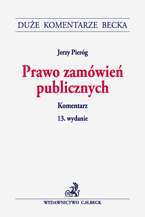 Komentarz do ustawy z 29.1.2004 r. – Prawo zamówień publicznych autorstwa wybitnego specjalisty w poruszanej tematyce Jerzego Pieróga stanowi najlepsze na rynku omówienie: przepisów ogólnych Prawa zamówień publicznych, zasad i trybu udzielania zamówień publicznych, środków ochrony prawnej, kontroli udzielania zamówień publicznych, organów właściwych w sprawach dot. zamówień publicznych. Wydanie 13. zostało znacznie poszerzone i uzupełnione o najnowsze orzecznictwo, bardzo istotne z punktu widzenia praktyki oraz najnowsze poglądy doktryny. Ponadto bazując na tekście jednolitym z 28.5.2013 r. (t.j. Dz.U. z 2013 r. poz. 907) uwzględnia i szczegółowo prezentuje omówienie najnowszych zmian, także projektowanych. Najnowsze wydanie Komentarza w sposób jasny i przejrzysty pozwala na rozwiązanie pojawiających się w praktyce problemów związanych z wykładnią przepisów zawartych w Prawie zamówień publicznych. Dla wygody Czytelników, ułatwiając szybką orientację w tekście, niniejszy Komentarz wyróżnia się szczegółową strukturą wewnętrzną, z precyzyjnym, przejrzystym i jednolitym podziałem zagadnień. Komentarz z pewnością będzie przydatny w codziennej pracy adwokatów, radców prawnych, sędziów, pracowników administracji, a przede wszystkim osób zajmujących się zamówieniami publicznymi w praktyce. Autor: Jerzy Pieróg – radca prawny specjalizujący się w prawie zamówień publicznych, prowadzący Kancelarię Prawną Jerzy T. Pieróg. Pierwszy dyrektor biura wdrażającego i nadzorującego arbitraż w Urzędzie Zamówień Publicznych. W latach 1995-2004 arbiter z listy Prezesa UZP, wielokrotnie przewodniczył składom orzekającym w sprawach zamówień publicznych. Ekspert sejmowych komisji w pracach nad przepisami dotyczącymi zamówień publicznych. Wieloletni wykładowca zamówień publicznych m. in. w Szkole Głównej Handlowej w Warszawie i w Szkole Biznesu Politechniki Warszawskiej.