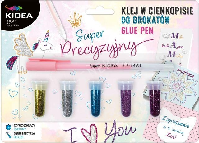 Precyzyjny klej w cienkopisie + 5 brokatów Kidea.