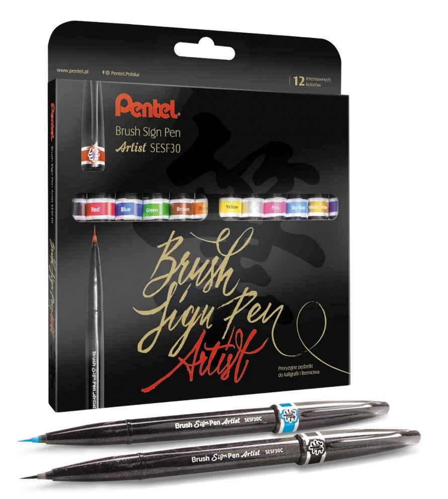 Precyzyjny pędzelek do kaligrafii SESF30, mix 12 kolorów opakowanych w elegancki kartonik.