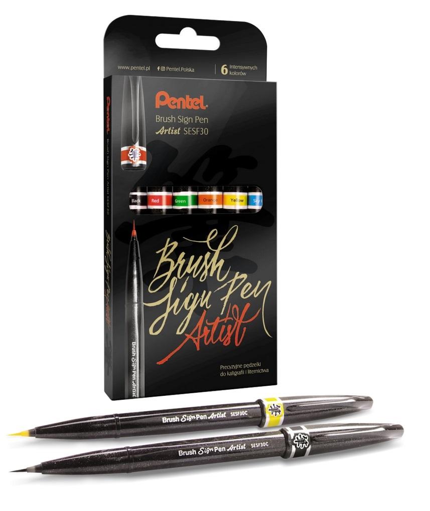 Precyzyjny pędzelek do kaligrafii SESF30, mix 6 kolorów opakowanych w elegancki kartonik.