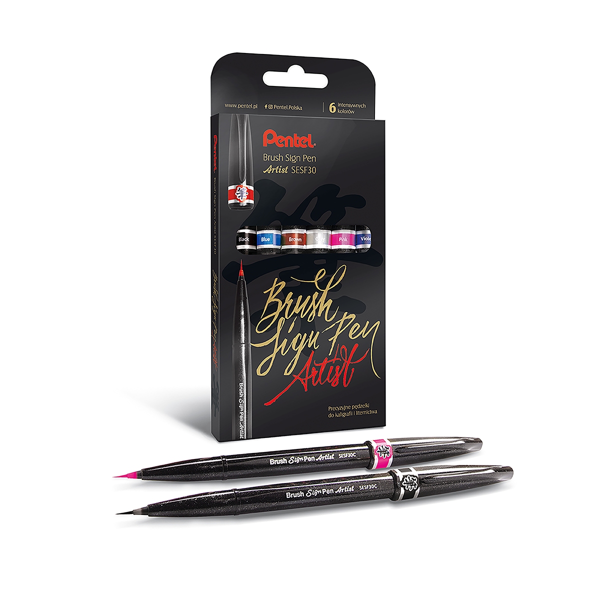 Opakowanie Precyzyjny pędzelek do kaligrafii  SESF30, mix 6 kolorów opakowanych w elegancki kartonik.