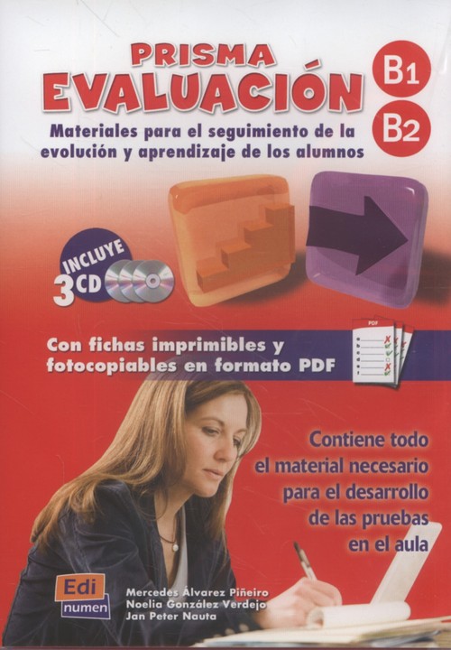 Incluye: Libreto de instrucciones + 3 CD. Prisma Evaluación B1 presenta: Una introducción para el profesor. Doce pruebas de control, una por unidad, con las que se pretenden medir los conocimientos y destrezas del alumno. Tres exámenes de aprovechamiento en los que el estudiante deberá aplicar sus conocimientos, destrezas y estrategias a nuevas situaciones de comunicación. Doce evaluaciones, una por unidad, donde se le brinda la oportunidad de expresarse sobre su proceso de aprendizaje y la enseñanza que recibe. Un total de diecinueve grabaciones que forman parte de las pruebas y exámenes. Prisma Evaluación B2 presenta: Una introducción para el profesor. Una prueba de acceso que funciona como diagnóstico o prueba de nivel para determinar si el estudiante dispone de suficientes conocimientos y destrezas para acceder a este nivel. Doce pruebas de control, una por unidad, con las que se pretenden medir los conocimientos y destrezas del alumno. Tres exámenes de aprovechamiento en los que el estudiante deberá aplicar sus conocimientos, destrezas y estrategias a nuevas situaciones de comunicación. Doce evaluaciones, una por unidad, donde se le brinda la oportunidad de expresarse sobre su proceso de aprendizaje y la enseñanza que recibe. Un total de veintidós grabaciones que forman parte de las pruebas y exámenes.