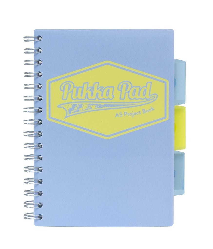Project book z najnowszej serii Pastel charakteryzuje się subtelnymi, pastelowymi okładkami w kolorze niebieskim, różowym i morskim. Dodatkowo posiada polipropylenową okładkę ochronną, dzięki czemu, kołozeszyt jest wytrzymały i odporny na zagięcia. Posiada kolorowe przekładki z pojemnymi kieszeniami na dodatkowe notatki i dokumenty. Dostępne rozmiary: A5. Ilość stron: 200; gramatura papieru: 80g.