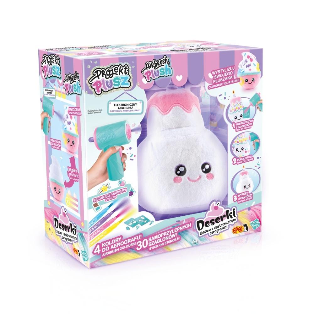Projekt Plusz to jedyna w swoim rodzaju linia pluszaków, które możesz dekorować bez końca! Dzięki dołączonemu aerografowi nadasz swoim Deserkom unikalny wygląd, a gdy najdzie Cię ochota na zmiany możesz je po prostu wyprać i zacząć całą zabawę od nowa!