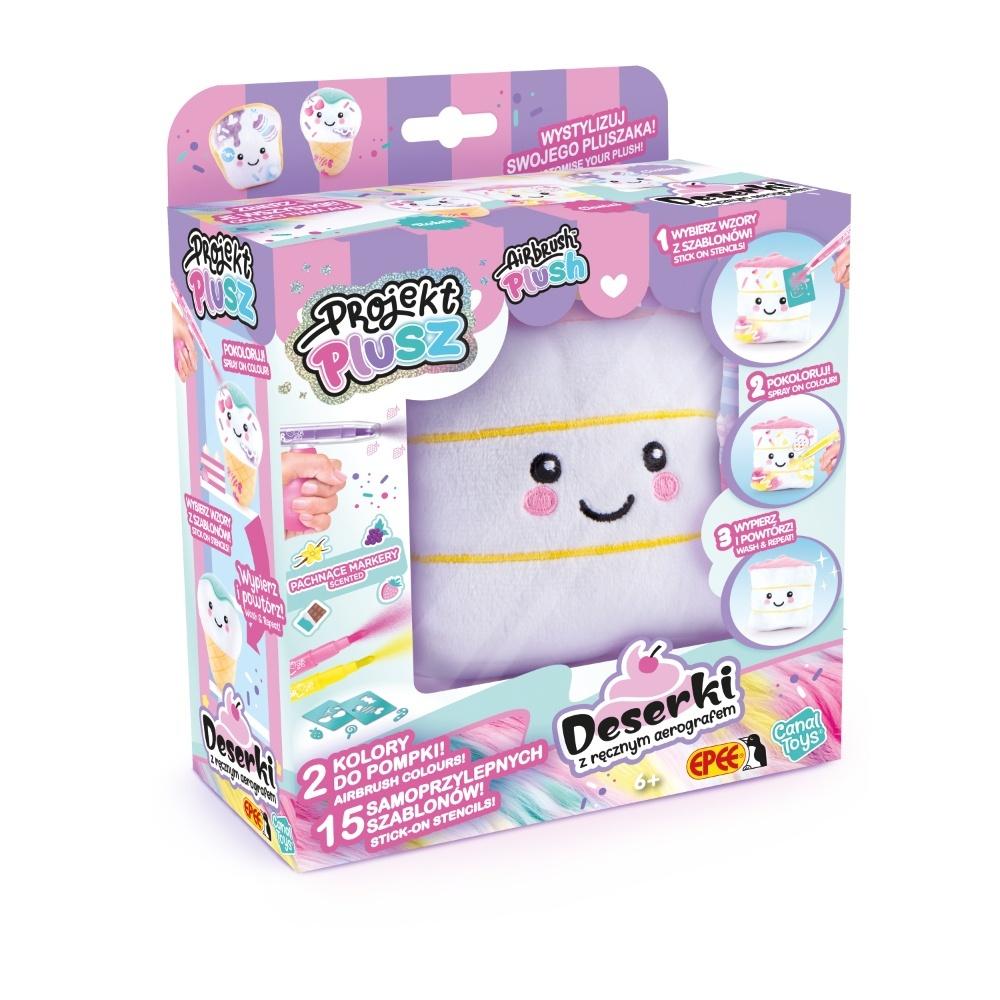 Projekt Plusz to jedyna w swoim rodzaju linia pluszaków, które możesz dekorować bez końca! Dzięki dołączonemu aerografowi nadasz swoim Deserkom unikalny wygląd, a gdy najdzie Cię ochota na zmiany możesz je po prostu wyprać i zacząć całą zabawę od nowa!
