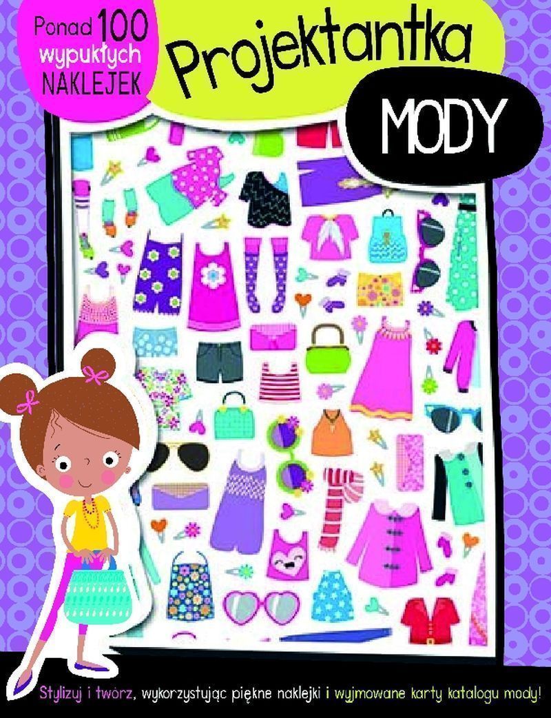 Piękne kreacje na każdą okazję, oryginalne dodatki, różnorodne tkaniny świat mody czeka na Ciebie w tej książeczce! Wykonaj ciekawe zadania i wypełnij dołączony katalog, by poczuć się prawdziwą projektantką! Zabłyśnij wyczuciem stylu i kreatywnością, wykorzystując ponad 100 wypukłych, kolorowych naklejek. Na końcu książeczki znajdziesz strony do przygotowania katalogu. Wyjmij je, przyklej naklejki i dodaj własne szkice.