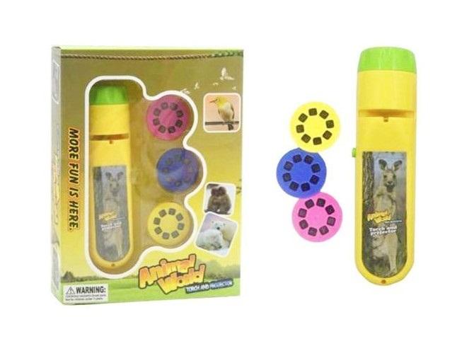 Latarka i projektor w jednym. Lekka poręczna latereczka przyda się każdemu małemu poszukiwaczowi przygód. Gdy będzie chciał pooglądać zwierzęta wystarczy w latarkę włożyć kółeczko ze slajdami zwierząt.W zestawie: 3 x 8 zdjęć, latarka, baterie 2xAA nie załączone do zestawu.Podane wymiary są wymiarami opakowania.Zabawka dla dzieci od 3 lat.