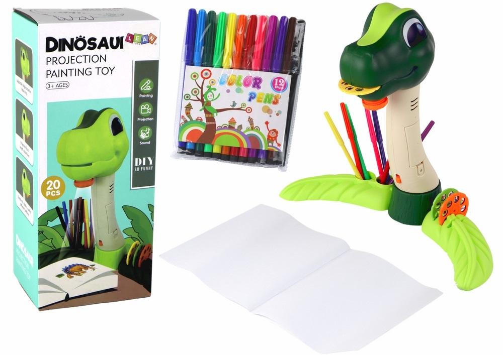 Projektor do Rysowania Dinozaur Dźwięki Akcesoria To niezwykła i interaktywna zabawka, która zapewnia dzieciom rozrywkę, kreatywność i edukację. Projektor ma uroczy kształt dinozaura, który przykuwa uwagę dzieci. Jednak to nie koniec jego atrakcji jego głowa jest ruchoma, co pozwala dzieciom dostosować wysokość projekcji do swoich potrzeb i preferencji, co sprawia, że zabawa jest jeszcze bardziej interaktywna i angażująca.Zestaw jest również wyposażony w funkcję dźwiękową, która umila dzieciom czas rysowania.Wymiary projektora wynoszą: 36 cm x 33 cm x 9 cm, dzięki czemu jest łatwy do przechowywania.