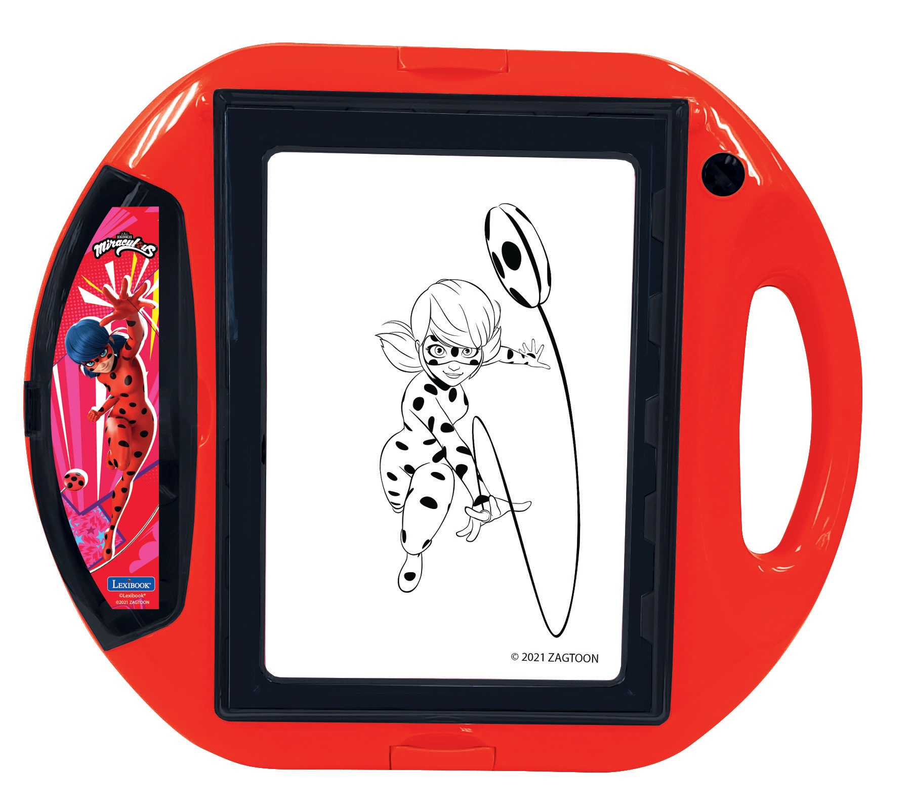 * Fantastyczny projektor do rysowania z ekranem formatu A5, 10 szablonami i 4 stemplami inspirowanymi światem Miraculous, aby uczyć się rysować podczas zabawy. Bardzo łatwy w użyciu dzięki świecącemu ekranowi i praktycznej konfiguracji, ten projektor otwiera się, aby przechowywać wszystkie akcesoria i nosić go wszędzie.