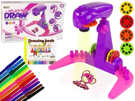 Różowy Projektor do rysowania + szablony Rzutnik Projector Draw Rzutnik jest fantastyczną propozycją na prezent dla każdego dziecka, które uwielbia rysować. Zabawka ta kryje w sobie dwie funkcje - może być zarówno projektorem, jak i rzutnikiem. Zabawa z wykorzystaniem przedmiotu umożliwia łatwe kopiowanie obrazków z dołączonych do zestawu wzorów, a także wyświetlanie ich na przykład na ścianie. Uważamy, że jest to gwarancją długiej, rozwijającej zabawy. Zestaw 2 w 1 składa się z: - projektora z podstawką do rysowania i malowania, - 4 krążków z obrazkami, - 12 pisaków - 32 przykładowych wzorów do rysowania Prezentowany projektor swym efektownym wyglądem zachęci do zabawy każdą dziewczynkę. Różowo-fioletowa kolorystyka. Zabawkę wykonano z atestowanych, bezpiecznych dla dzieci materiałów, które odznaczają się trwałością i solidnością. Rzutnik posiada ruchomą główkę, dzięki czemu można ustawić kąt nachylenia, a także ostrość wyświetlanego obrazka. Podstawka ma przegródki na krążki i kredki, co ułatwia wygodne przechowywanie akcesoriów. Samodzielne tworzenie obrazków z użyciem produktu w znacznym stopniu poprawi zdolności manualne dziecka, a także pomoże opanować precyzję i dokładność, konieczną w nauce pisania czy rysowania szlaczków. Wymiary projektora: 38 cm x 37 cm x 40 cm Wymiary opakowania: 39 cm x 24 cm x 9 cm Zabawka zasilana jest 3 sztukami baterii AA 1,5 V, które nie są dołączone do zestawu. Przeznaczona jest dla wszystkich maluchów powyżej 3. roku życia. Projektor posiada certyfikat CE, zapakowany jest w wielokolorowe pudełko, dzięki czemu jest rewelacyjnym pomysłem na prezent dla kreatywnej kilkulatki.