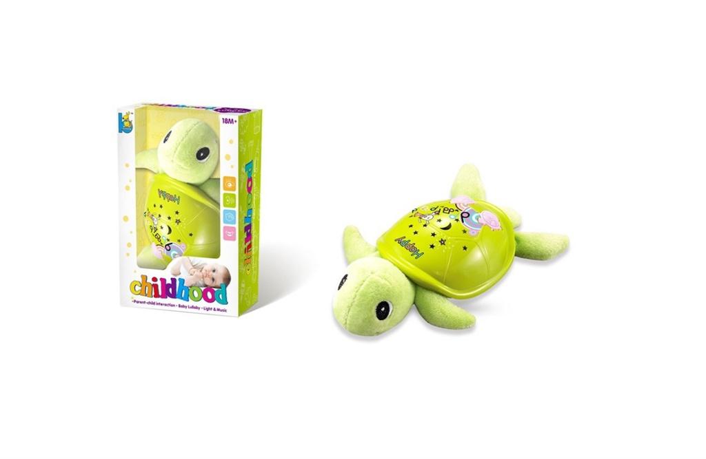Mini projektor gwiazd/lampka nocna na dla dzieci, mały żółwik z melodiami. Wyświetla białe gwiazdki na suficie.