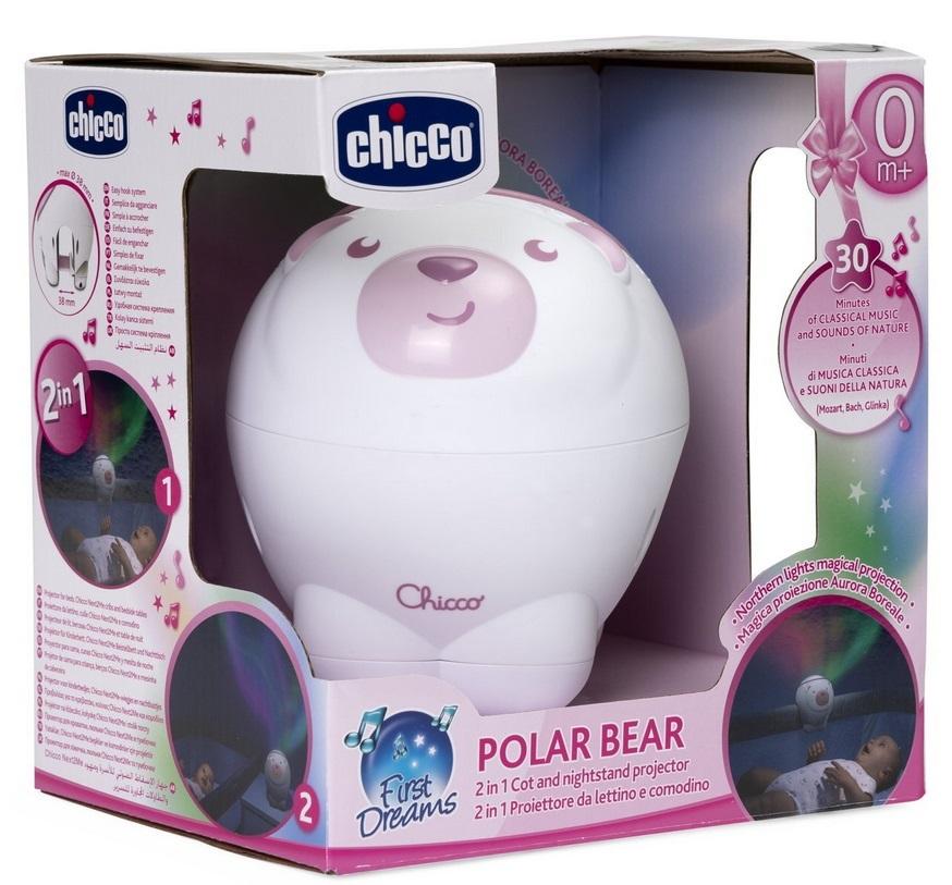 PROJEKTOR MIŚ POLARNY o kształcie uroczego misia łączy funkcję projektora, który z łatwością możemy zamontować na łóżeczku niemowlęcym oraz projektora do postawienia np. na szafce nocnej.