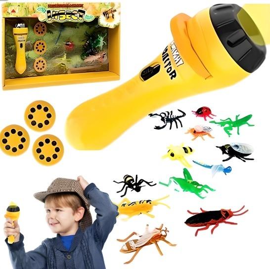 Projektor latarka rzutnik figurki insekty slajdy wzory owady obrazki zestaw