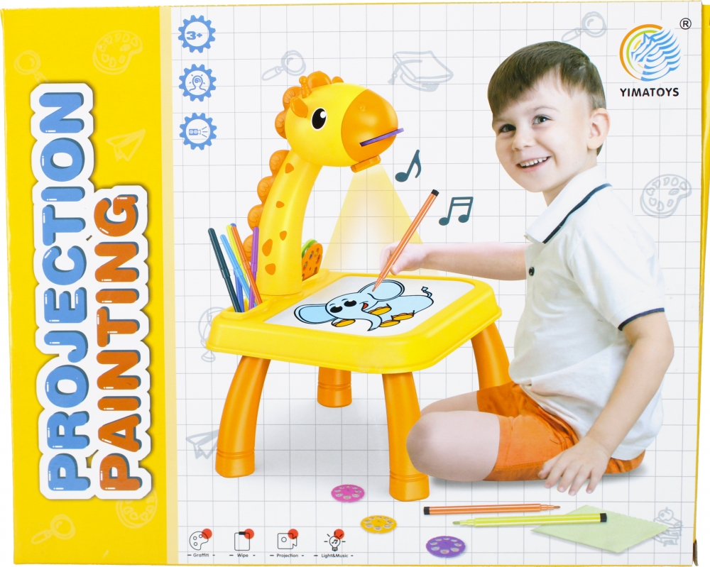 Projektor do rysowania posiada efekty dźwiękowe oraz świetlne. MEGA CREATIVE Stolik projektor może uprzyjemnić Twojemu dziecku wspó lną zabawę z rodzeństwem, przyjacółmi a także umili wasz wspólnie spędzony czas, jeśli tylko skusisz się na wspólną zabawę ze swoją pociechą. Zawartość zestawu Stolik projektor, kpl. pisaków w 12 kolorach, ściereczka do ścierania tablicy, 3x rzutnik z szablonami do wyświetlania, notes. Zabawka wykonana z plastiku i materiału. Stolik w kolorze żółto pomarańczowym.