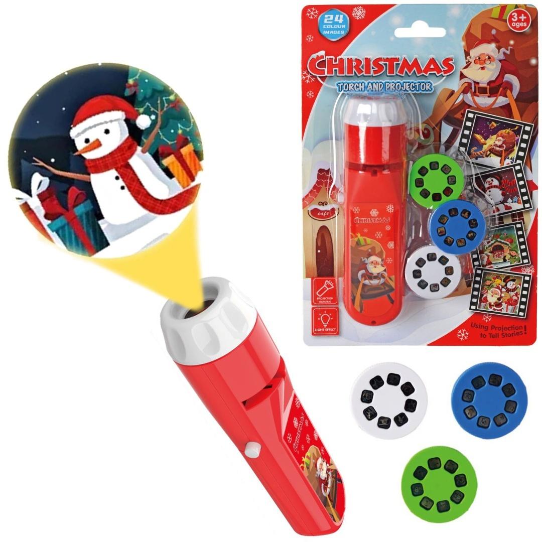Projektor: Dzięki dołączonym krążkom, latarka zmienia się w magiczny projektor! Po włożeniu jednego z krążków, na ścianie lub suficie pojawią się kolorowe, świąteczne obrazki, takie jak Mikołaj, bałwanek czy renifery.