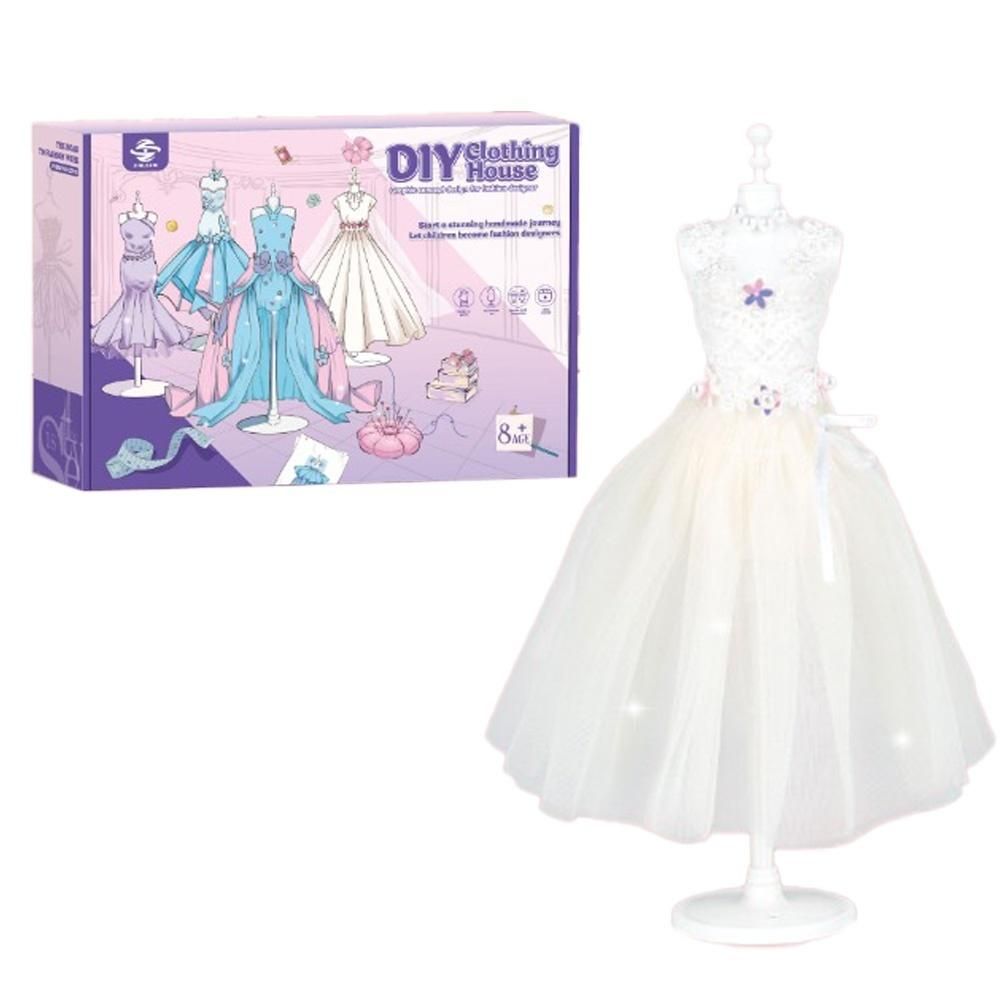 Projektowanie mody - zestaw kreatywny 3 manekiny, kawałki tiulu w białym kolorze, białe kawałki tiulu z cekinami, tasiemki, kokardki, koronki, nożyczki, igły nici, taśma dwustronna, klej. Wymiary opakowania: 35 x 9 x 25.5 cm Wiek 8+