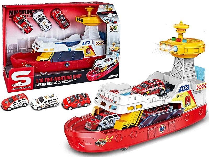 prom morski 1:16, z autami, z napędem na koło zam, światło, dźwięk; 32x22,5x13cm, W/B