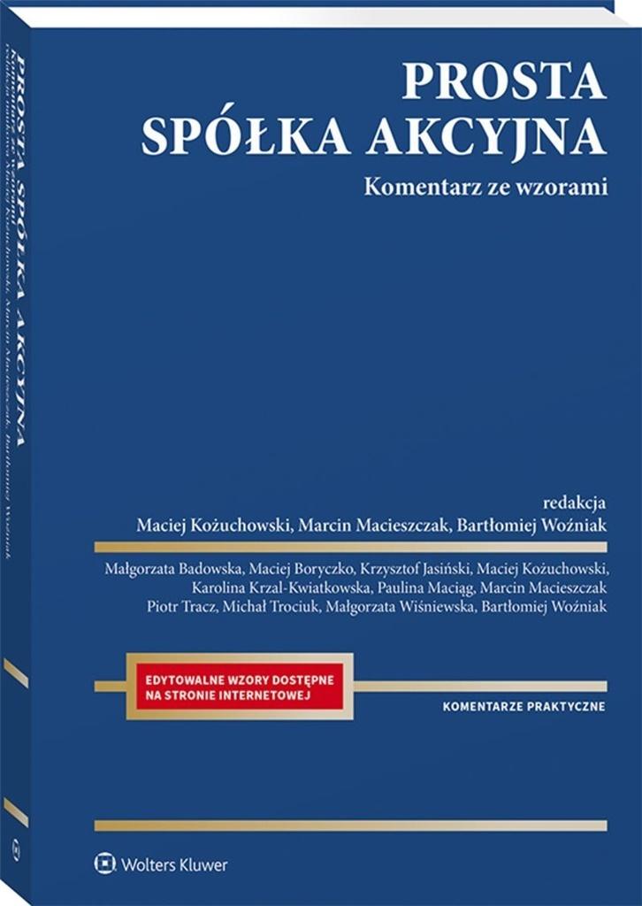 Stan prawny: 1 lipca 2021 r. W publikacji szczegółowo omówiono regulację prostej spółki akcyjnej, wprowadzonej do polskiego porządku prawnego z dniem 1 lipca 2021 r. Autorzy – przede wszystkim praktykujący doradcy transakcyjni – korzystając ze swojego bogatego doświadczenia w obsłudze podmiotów gospodarczych, przybliżyli problematykę tej nowej spółki kapitałowej, w szczególności na gruncie znanych już problemów z bieżącym funkcjonowaniem spółek z ograniczoną odpowiedzialnością i spółki akcyjnej. W toku prac nad publikacją szczególny nacisk położony został na jej aspekt praktyczny, tj. zagadnienia związane z faktycznym funkcjonowaniem spółki jako uczestnika obrotu gospodarczego. W komentarzu kompleksowo omówiono sposób zawiązania spółki, kompetencje jej organów oraz czynności niezbędne w jej codziennym funkcjonowaniu – zarówno te inkorporowane w modelu dualistycznym, jak i w będącym nowością w polskim systemie prawnym modelu monistycznym (unitarnym). Analizę poszczególnych regulacji prawnych uzupełnia zbiór wzorcowych dokumentów i pism mogących mieć zastosowanie w funkcjonowaniu prostej spółki akcyjnej. Wzory pism zawarte w publikacji są dostępne w wersji elektronicznej do pobrania ze strony: www.wzory-prosta-spolka-akcyjna.wolterskluwer.pl(Link do innej strony) – po wpisaniu zamieszczonego w książce kodu aktywacyjnego. Wzory można modyfikować i dostosowywać do własnych potrzeb.