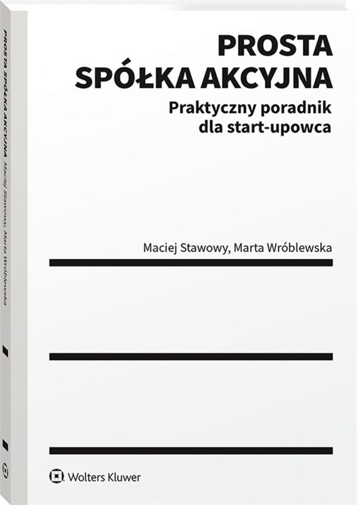 Stan prawny: 1 kwietnia 2021 r., z uwzględnieniem zmian wchodzących w życie 1 lipca 2021 r. Książka jest praktycznym poradnikiem dotyczącym prowadzenia nowego typu spółki kapitałowej – prostej spółki akcyjnej, przeznaczonym dla start-upowców. Będzie przydatna zarówno dla początkujących przedsiębiorców rozważających rozpoczęcie działalności gospodarczej, jak i dla tych podmiotów funkcjonujących na rynku, które zastanawiają się nad przekształceniem prowadzonych przez siebie start-upów w proste spółki akcyjne. Celem autorów jest wyjście naprzeciw oczekiwaniom przedsiębiorców i przekazanie specjalistycznej wiedzy prawnej w przystępny sposób, omawiając najważniejsze elementy determinujące istnienie i funkcjonowanie prostej spółki akcyjnej na praktycznych przykładach, z gotowymi do wykorzystania schematami i projektami dokumentów. Z recenzji wydawniczej: "Prosta spółka akcyjna stanowi novum w polskim systemie prawa gospodarczego, chociaż treść regulacji, a nawet sama potrzeba jej przyjmowania budzi poważne kontrowersje. Warto jednak, by przedstawiciele rozwijających się środowisk startupowych mieli możliwość samodzielnej oceny przydatności tej formy organizacyjno-prawnej dla prowadzonych przez nich innowacyjnych biznesów. Z pewnością oddawany do rąk Czytelników poradnik będzie pomocny." dr hab. Filip Grzegorczyk prof. Uniwersytetu Ekonomicznego w Krakowie