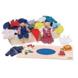 Znakomita zabawa w przebieranie dwóch sympatycznych misiaków. W drewnianej skrzyneczce mieści się 8 pełnych zestawów ubranek na każdą okazję. Drewniana skrzyneczka zawiera 2 figurki misiów ze zginanymi rączkami i nóżkami oraz 8 kompletów ubranek. 3+