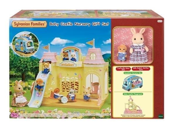 W zamkowym przedszkolu Sylvanian Families wszystkim dzieciom z rodziny Sylvanian dopisuje humor. Tutaj maluchy mogą szaleć i bawić się cały dzień. Mogą się huśtać, bujać i zjeżdżać na zjeżdżalni. Huśtawkę rownoważnię można przekształcić w stół z dwoma taboretami, przy którym dzieci mogą czytać książki. Zjeżdżalnię można przymocować do zewnętrznej ściany lub ustawić osobno na stojakach. Przedszkole Zamek z serii Sylvanian Families ma dwa piętra pełne niespodzianek. Dzieci mogą również uczestniczyć w lekcji muzyki przy fortepianie. Domek można ustawiać na platformie w różnych pozycjach, dzięki czemu jest więcej miejsca na zabawę w środku lub na terenie przed przedszkolem. Chorągiewki, wieżyczki i wnętrze są uroczo ozdobione licznymi detalami. W zestawie jest przedszkole Zamek, zjeżdżalnia, huśtawka, fortepian, huśtawka wagowa z możliwością zmiany w stół z taboretami i inne akcesoria. Wymiary (szer. x wys. x gł.): 26 x 25 x 20cm. Produkt przeznaczony dla dzieci od 3 roku życia.
