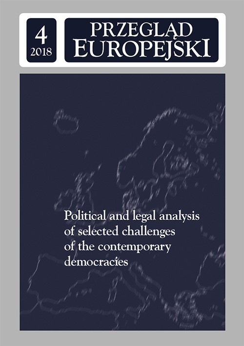 Political and legal analysis of selected challenges of the contemporary democracies. Numer poświęcony jest wyzwaniom, które stoją przed naczelnymi organami państwowymi, w szczególności analizie problemów związanych z przystąpieniem Polski do strefy euro, instytucji impeachmentu, czy konstytucyjnymi uprawnieniami parlamentu szwedzkiego w zakresie podziału władzy. Zawiera również artykuły omawiające aktualne zagadnienia z prawa europejskiego, m. in. umowy handlowe "nowej generacji" oraz status prawny dronów.