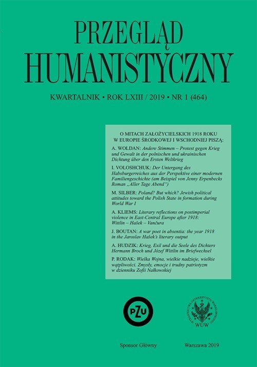 Numer stanowi kontynuację numeru 4/2018 zatytułowanego Wokół 1918 roku: środkowo- i wschodnioeuropejska poli-/kakofonia. Poświęcony jest mitom założycielskim (w rozumieniu P. Bourdieu) związanym z rokiem 1918, a stworzonym przez wspólnoty narodowe, które albo uzyskały niezależność państwową, albo bezskutecznie próbowały ją uzyskać, albo nie walczyły o jej uzyskanie, ale musiały zdefiniować swoje miejsce w zmienionym układzie sił politycznych po I wojnie światowej. Autorzy artykułów przyglądają się mitom, którymi przedstawiciele polskiej, ukraińskiej, żydowskiej, czeskiej i niemieckiej wspólnoty narodowej obudowywali przełom 1918 roku w tekstach literackich oraz innych manifestacjach dyskursywnych. Ponadto numer zawiera omówienie nowszych opracowań na temat niemieckiej okupacji Warszawy w latach 1915-1918.