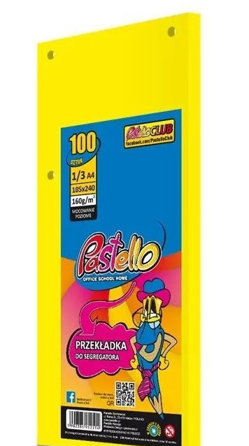 Przekładki tekturowe do segregatorów, wykonane z papieru o gramaturze 160gr, format 1/3 A4 24x10,5 cm,posiadają 4 otwory co umożliwia wpinanie w pionie oraz poziomie.