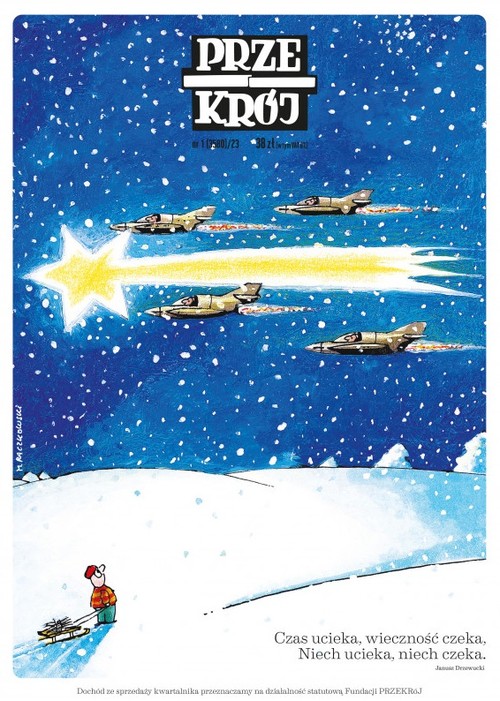 W zimowym „Przekroju” jest biało i refleksyjnie, jak to zimą. W tym najtrudniejszym okresie roku, gdy słońce daje nam najmniej światła i ciepła, zachęcamy do poszukiwania światła i ciepła w sobie oraz w bliskości z innymi ludźmi. Dziennikarka Berenika Steinberg pyta wybitne specjalistki o korzyści płynące z czułego tulenia. Filozof Will Buckingham opisuje zaś doświadczenie, kiedy po osobistej tragedii, jaka go spotkała, odzyskał sens życia właśnie dzięki serdecznemu uściskowi. Z kolei naukowcy Mostafa El-Kalliny i Zoe R. Donaldson objaśniają, jakie style przywiązania są typowe dla ludzi (oraz w jaki sposób się one kształtują). Aby się ogrzać, przenosimy się do Lewantu! Taką zbiorczą nazwą określane są kraje leżące na wschodnim wybrzeżu Morza Śródziemnego: Syria, Izrael, Liban. Smakujemy tamtejsze jedzenie, być może – jak pisze u nas Piotr Ibrahim Kalwas – najlepsze na świecie. Paulina Wilk wspomina dawne Aleppo i z nadzieją czeka na nowe. Agnieszka Drotkiewicz przybliża postać rabina Jonathana Sacksa, filozofa i etyka, a Aleksandra Woźniak opisuje pełną zwrotów akcji historię zwojów z Qumran, odkrytych w połowie XX w. i do dziś pozostających wielką zagadką dla historyków oraz archeologów. Podróżujemy także w czasie: tym razem do ponurego, ale jednocześnie niezmiernie ciekawego okresu, w którym na naszych ziemiach żyły wiedźmy. Leczyły, ale też rzucały uroki na krowy, biesiadowały z diabłami i sprowadzały deszcz. Zmieniały się w ćmy albo ropuchy; były poddawane torturom i palone na stosach. Czego możemy się dowiedzieć o człowieku, przyglądając się tamtym czasom? Zapraszamy do tekstów Tomasza Wiśniewskiego, Alice Tarbuck i Mony Chollet. Poza tym w zimowym „Przekroju” mnóstwo pięknej literatury: wiersze Janusza Drzewuckiego, Jacka Dehnela i Bolesława Leśmiana, a także proza, m.in. Etgara Kereta, Silje Bekeng, Camille Bordas i Ester Singer Kreitman. A do tego wszystkiego – niedźwiedzie. Białe, czarne, brunatne, karpackie, polarne i z lasów deszczowych. Miłego czytania! „Przekrój” w nowym formacie jest wygodniejszy do przeglądania i idealnie mieści się w skrzynce pocztowej. 196 stron do czytania przez trzy miesiące!