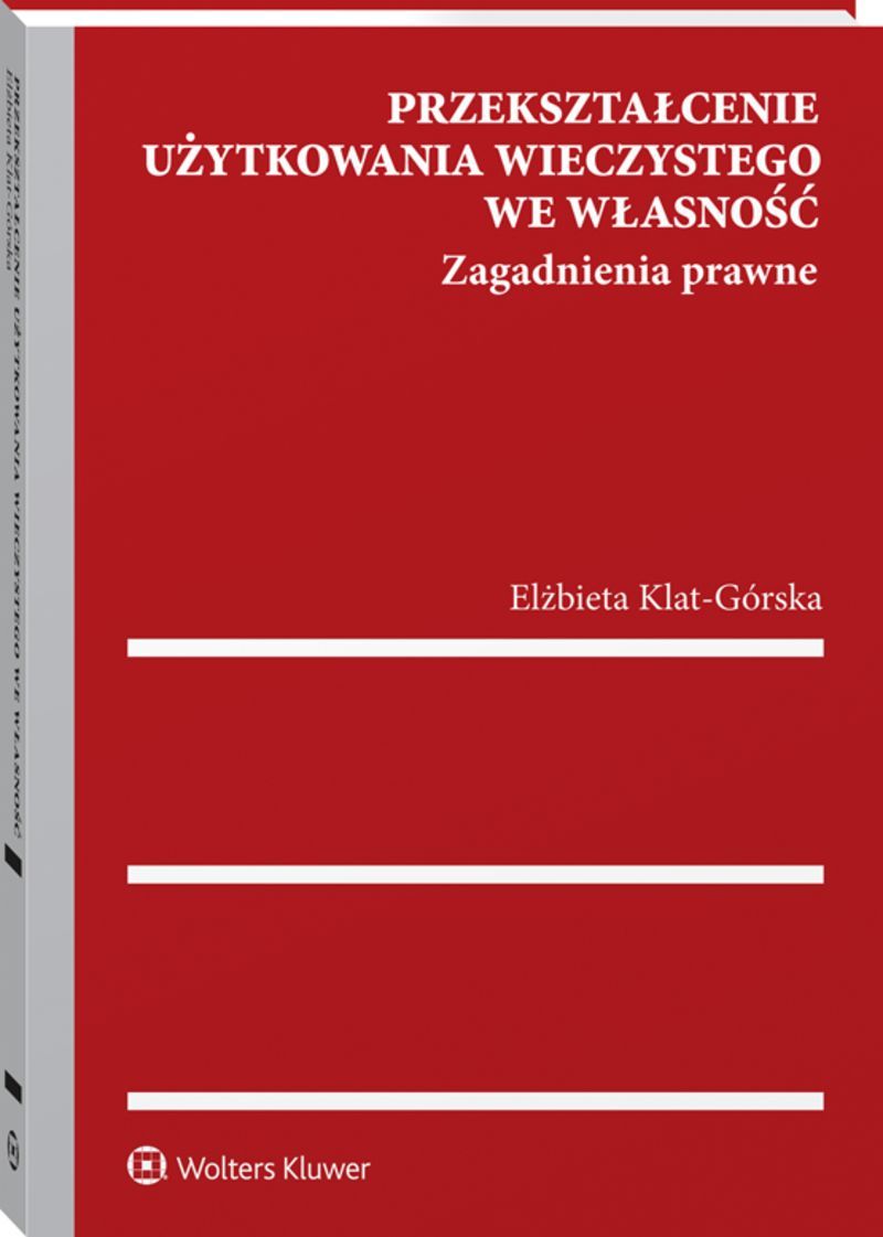 Książka zawiera omówienie przepisów prawa materialnego oraz prawa proceduralnego regulujących tryby nabycia prawa własności nieruchomości przez użytkownika wieczystego, ze szczególnym uwzględnieniem przepisów nowej ustawy z 20.07.2018 r. o przekształceniu prawa użytkowania wieczystego gruntów zabudowanych na cele mieszkaniowe w prawo własności tych gruntów, a ponadto wprowadzone tym aktem prawnym nowelizacje ustaw istotnych dla prezentowanej tematyki, tj.: