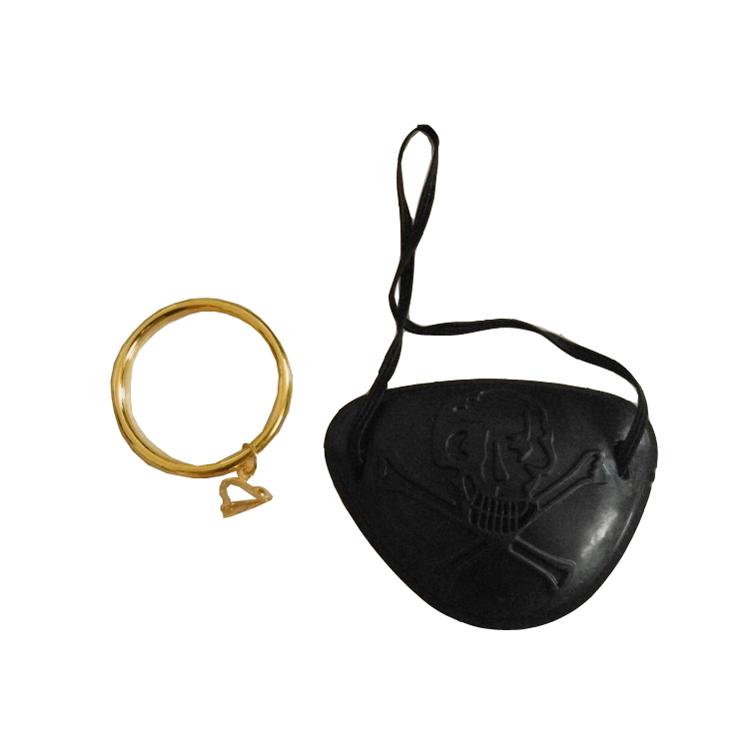 Czarna przepaska na oko oraz okrągły kolczyk w kolorze złota to nieodłączne atrybuty każdego pirata. Przepaska mocowana na elastycznej gumce jest bardzo wygodna w noszeniu. Rozmiary poszczególnych elementów są uniwersalne. Pasują zarówno na dzieci jak i dorosłych.