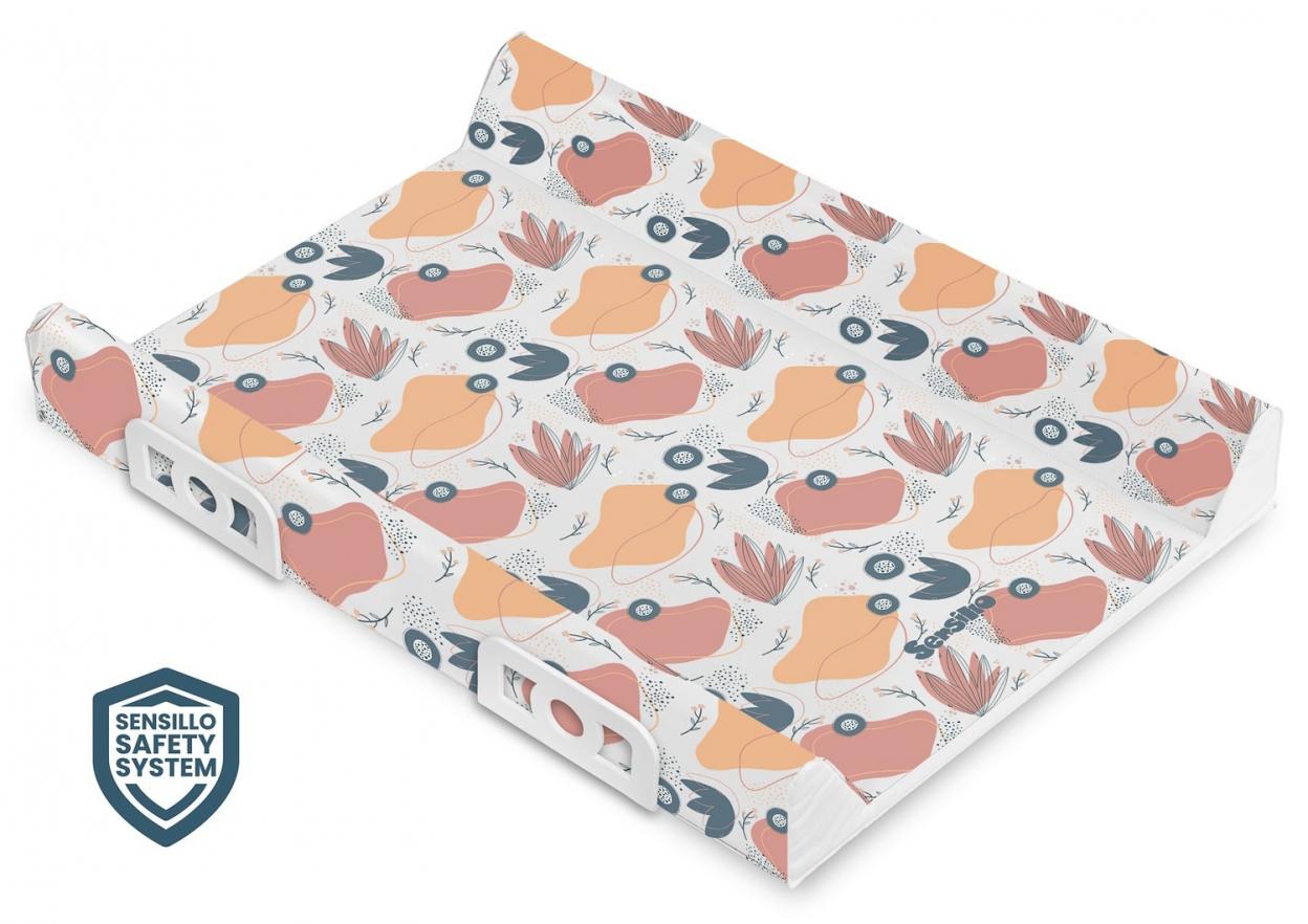 Przewijak usztywniany Sensillo z wesołymi nadrukami, został przygotowany z myślą o komfortowej pielęgnacji najmłodszych. Załączone do zestawu nóżki pozwalają na bezpieczny i stabilny montaż bezpośrednio na łóżeczku o szerokości 60 cm. Przewijak może być również zamontowany na komodzie lub innym stabilnym podłożu. Przewijak wyróżnia się innowacyjnym systemem bezpieczeństwa Sensillo Safety System, który zapobiega wypadnięciu dziecka, dzięki dodatkowym bocznym wzmocnieniom. Do produkcji użyliśmy najwyższej jakości materiałów zapewniających maksymalne bezpieczeństwo i komfort użytkowania. Ceratka, którą pokryty jest przewijak niemowlęcy Sensillo jest w pełni bezpieczna dla zdrowia dziecka - nie zawiera ftalanów, metali ciężkich oraz innych szkodliwych substancji.