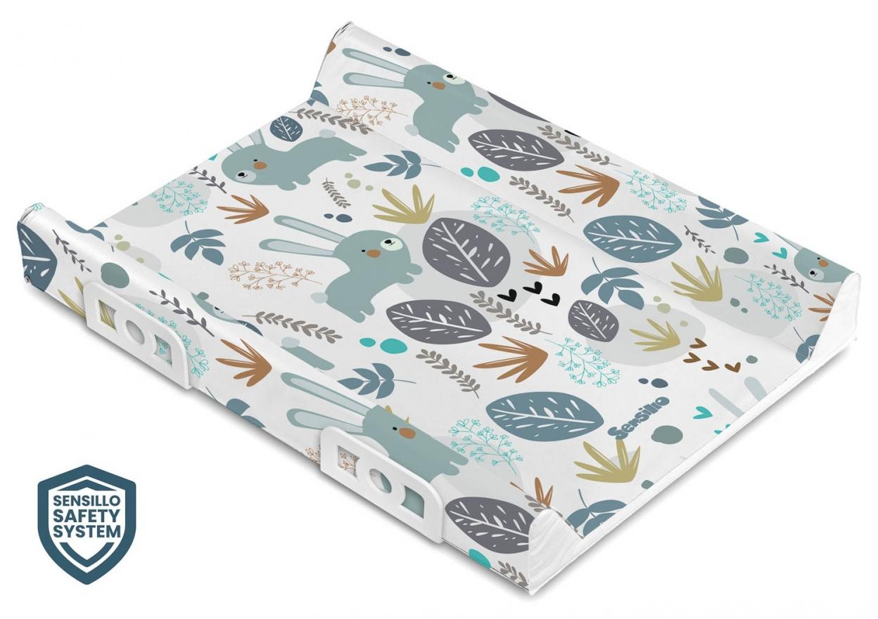 Przewijak usztywniany Sensillo został przygotowany z myślą o komfortowej pielęgnacji najmłodszych. Załączone do zestawu nóżki pozwalają na bezpieczny i stabilny montaż bezpośrednio na łóżeczku o szerokości 60 cm. Przewijak może być również zamontowany na komodzie lub innym stabilnym podłożu. Przewijak wyróżnia się innowacyjnym systemem bezpieczeństwa Sensillo Safety System, który zapobiega wypadnięciu dziecka, dzięki dodatkowym bocznym wzmocnieniom. Do produkcji użyliśmy najwyższej jakości materiałów zapewniających maksymalne bezpieczeństwo i komfort użytkowania. Ceratka, którą pokryty jest przewijak niemowlęcy Sensillo jest w pełni bezpieczna dla zdrowia dziecka - nie zawiera ftalanów, metali ciężkich oraz innych szkodliwych substancji.