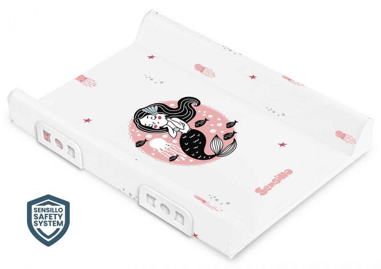 Przewijak usztywniany Sensillo z wesołymi nadrukami, został przygotowany z myślą o komfortowej pielęgnacji najmłodszych. Załączone do zestawu nóżki pozwalają na bezpieczny i stabilny montaż bezpośrednio na łóżeczku o szerokości 60 cm. Przewijak może być również zamontowany na komodzie lub innym stabilnym podłożu. Przewijak wyróżnia się innowacyjnym systemem bezpieczeństwa Sensillo Safety System, który zapobiega wypadnięciu dziecka, dzięki dodatkowym bocznym wzmocnieniom. Do produkcji użyliśmy najwyższej jakości materiałów zapewniających maksymalne bezpieczeństwo i komfort użytkowania. Ceratka, którą pokryty jest przewijak niemowlęcy Sensillo jest w pełni bezpieczna dla zdrowia dziecka - nie zawiera ftalanów, metali ciężkich oraz innych szkodliwych substancji.