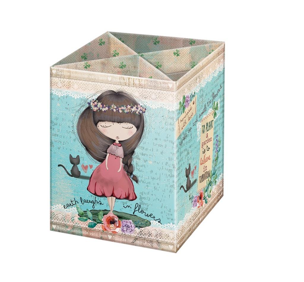 Pudełko na przybory szkolne w pięknym motywie Anekke. Jest bardzo pojemne, a w dodatku posiada cztery przegródki do poukładania długopisów, kredek lub innych artykułów szkolnych. Wykonany z wysokiej jakości kartonu. Wymiary: 10cm x 8cm
