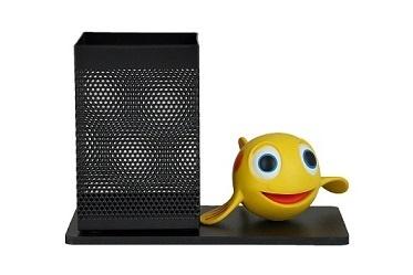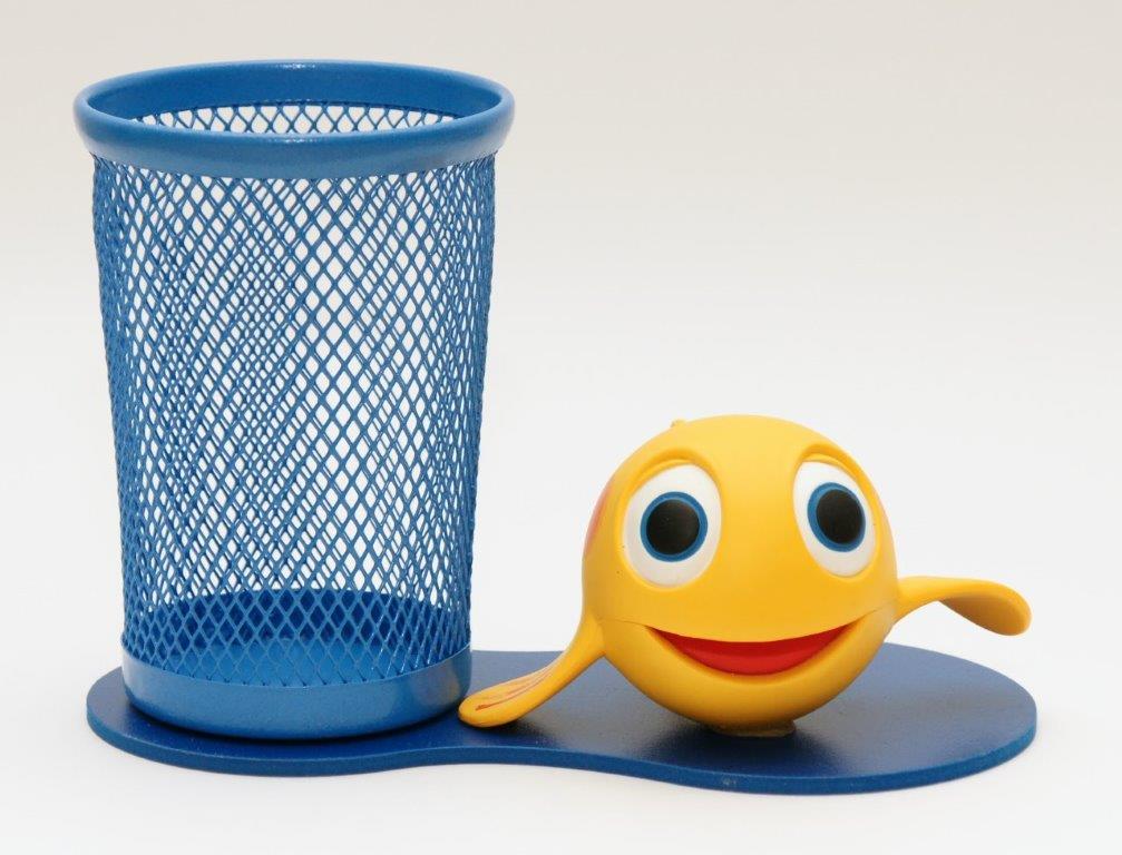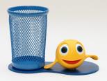 Przybornik biurkowy z jedną figurką. Figurka ręcznie malowana. Kolor przybornika : niebieski