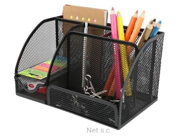 Elegancki, bardzo funkcjonalny przybornik z metalowej siateczki.