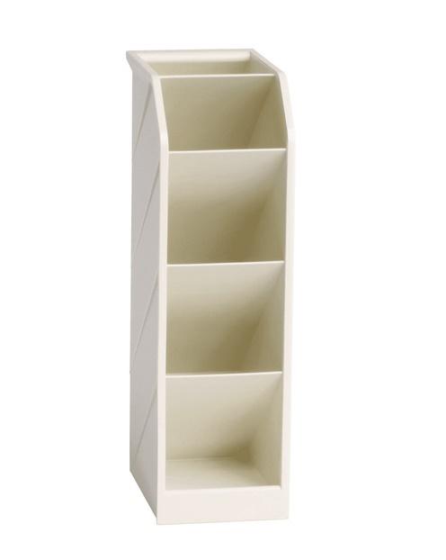 Designerski przybornik na długopisy, który pomoże zorganizować biurko. Doskonały do pokoju w domu lub do pracy przybornik z 4 przegrodami z mocnego tworzywa w kolorze beżowym.