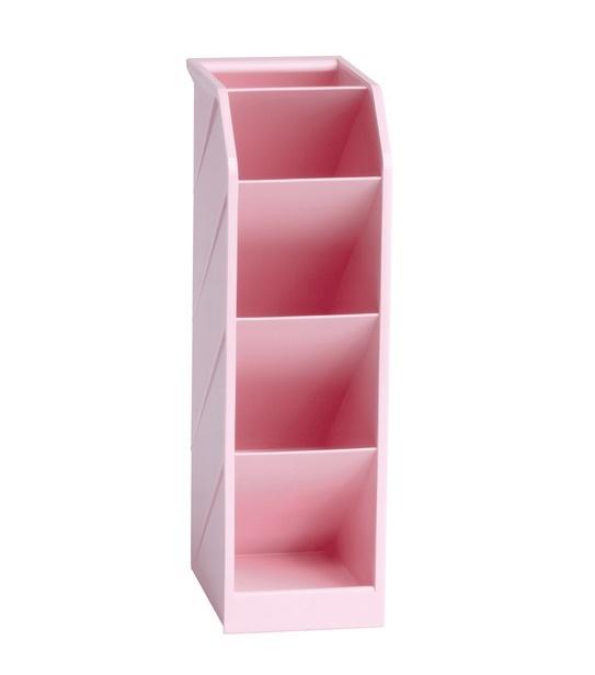 Designerski przybornik na długopisy, który pomoże zorganizować biurko. Doskonały do pokoju w domu lub do pracy przybornik z 4 przegrodami z mocnego tworzywa w kolorze różowym.