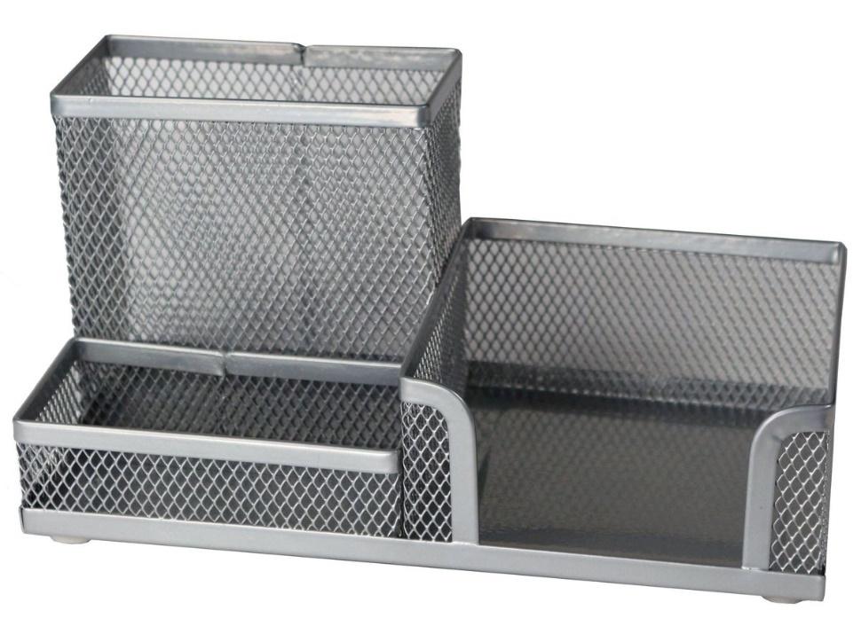 Przybornik na biurko - wykonany z metalowej siatki powlekanej lakierem - kolor srebrny - szer. 20 cm x wys. 9,7 cm x gł. 10 cm