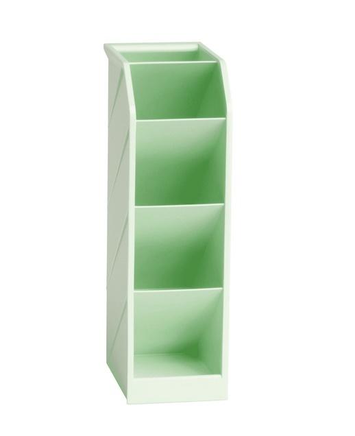 Designerski przybornik na długopisy, który pomoże zorganizować biurko. Doskonały do pokoju w domu lub do pracy przybornik z 4 przegrodami z mocnego tworzywa w kolorze zielonym.